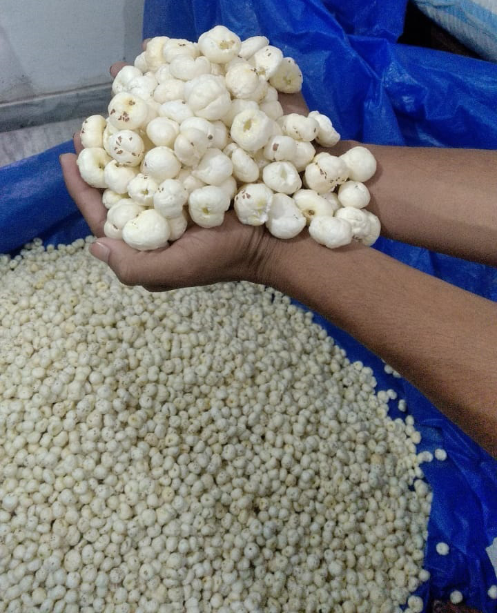 In India, the state of Bihar is the largest producer of makhanas. Makhanas are derived from lotus seeds. Lotus develops seed pods, and each pod contains seeds. The seeds are then dried and roasted on high flames.